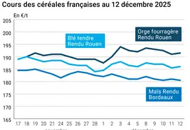 Marché des céréales du 15 décembre 2025 - Le prix du blé tendre français redescend à 185 €/t, sur des marchés céréaliers mondiaux déprimés