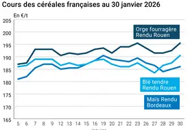 L’évolution des prix du blé, de l’orge et du maïs français entre le 30 janvier et le 2 février 2026,…