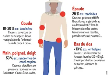 Entre charges lourdes, postures contraignantes et gestes répétitifs, l’apiculture met le corps à rude épreuve…