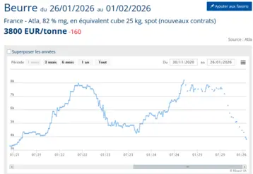La cotation spot Atla du beurre est passée sous les 4 000 €/tonne en janvier et continue de reculer. Le cours…
