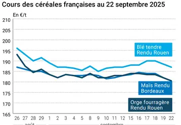 L’évolution des prix du blé, de l’orge et du maïs français entre le 19 et le 22 septembre 2025, expliquée par…