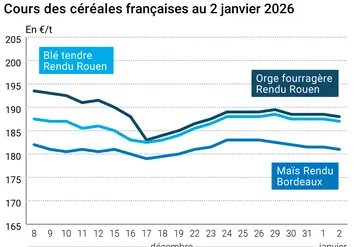 L’évolution des prix du blé, de l’orge et du maïs français entre le 2 et le 5 janvier 2026, expliquée par La…
