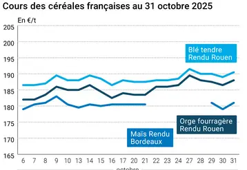 L’évolution des prix du blé, de l’orge et du maïs français entre le 30 et le 31 octobre 2025, expliquée par…