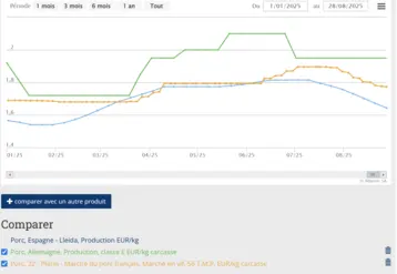 Depuis la fin du mois de juillet, le prix de référence du porc baisse en France et en Espagne, tandis qu’il…