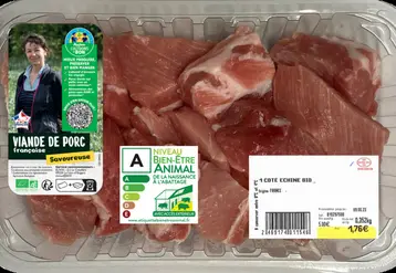 Le distributeur Auchan et le groupement de producteurs Unébio présentent un étiquetage du…