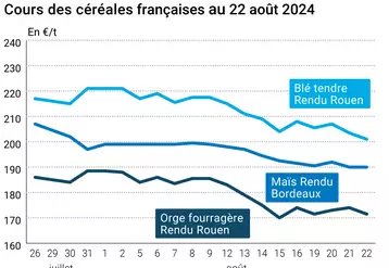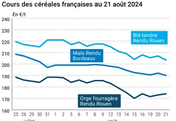 L’évolution des prix du blé, de l’orge et du maïs français entre le 21 et le 22 août 2024, expliquée par La…