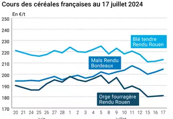 L’évolution des prix du blé, de l’orge et du maïs français entre le 16 et le 17 juillet 2024, expliquée par…