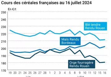 L’évolution des prix du blé, de l’orge et du maïs français entre le 15 et le 16 juillet 2024, expliquée par…