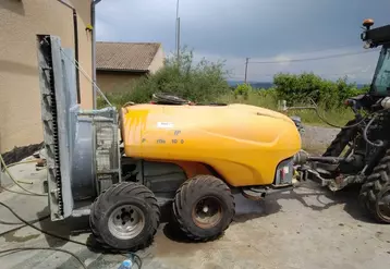 Adrian Grattesol, viticulteur à Sarras en Ardèche, a ajouté un essieu à son pulvérisateur traîné afin de…