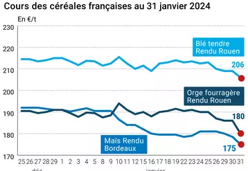L’évolution des prix du blé, de l’orge et du maïs français entre le 30 et le 31 janvier, expliquée par La…