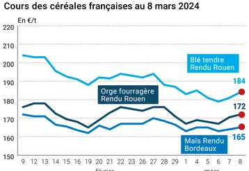 L’évolution des prix du blé, de l’orge et du maïs français entre le 7 et le 8 mars, expliquée par La Dépêche…
