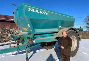 Xavier Testu, agriculteur dans la Somme, a investi dans un épandeur d’engrais traîné qui mobilise un tracteur…