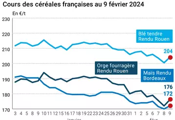 L’évolution des prix du blé, de l’orge et du maïs français entre le 8 et le 9 février, expliquée par La…