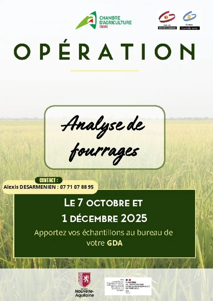La première journée de la campagne d’analyses de fourrages aura lieu le 7 octobre 2025, et la deuxième journée est programmée au 1er décembre 2025.