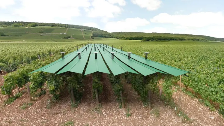 Imaginez un grand parasol, ou parapluie, de six mètres de long qui se déploierait au-dessus des vignes pour les protéger de l'ensoleillement, du gel ou encore de la grêle. C'est l'idée farfelue qu'a eu François Lemaire, un beau jour au volant de sa voiture.