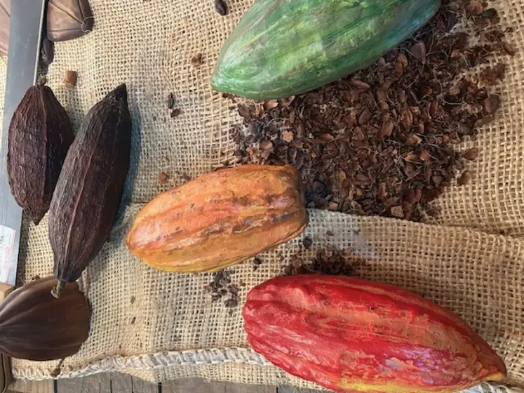 « Nous travaillons avec des gens que nous connaissons, et on sait d’où viennent nos fèves. » Chaque étape de la transformation est soigneusement contrôlée pour préserver les arômes et la qualité du cacao. « Quand on ouvre une cabosse, les fèves sont comme ça à l’intérieur, entourées de mucilage. C’est très gélatineux mais c’est très doux et agréable au goût. »
