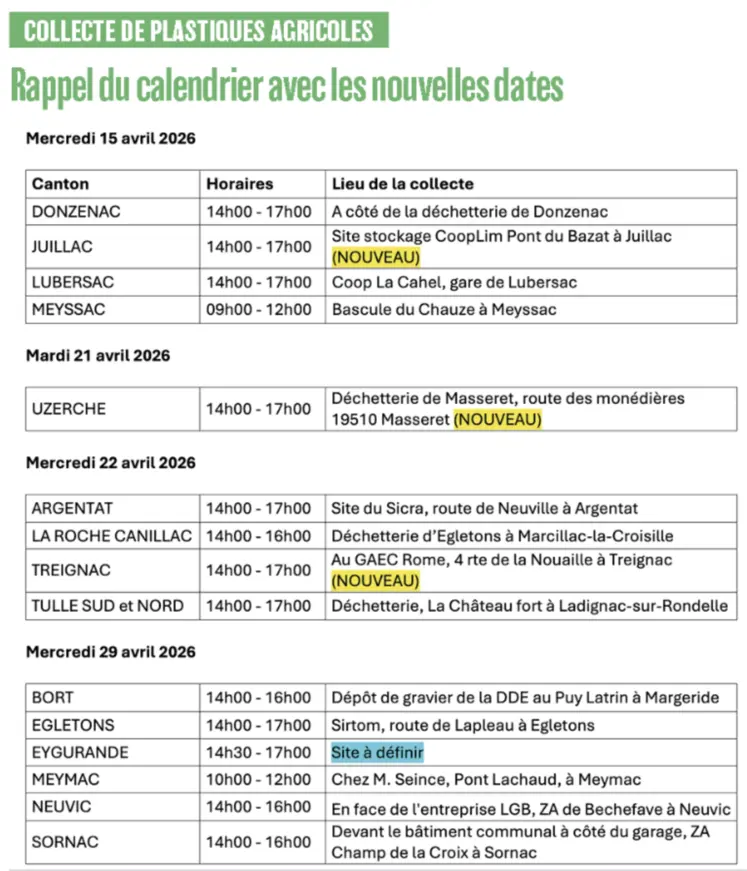 Voici le tableau des collectes avec les dates complètées et modifiées