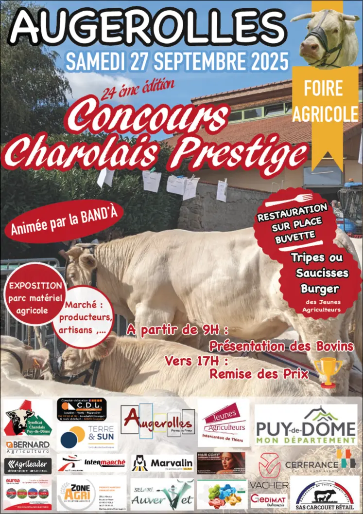 La Foire d'Augerolles s'est reconstruite également avec le soutien des Jeunes Agriculteurs du canton de Thiers. Ce sont d'ailleurs eux qui ont œuvré à ce que le Concours départemental Charolais Prestige se déroule à Augerolles.