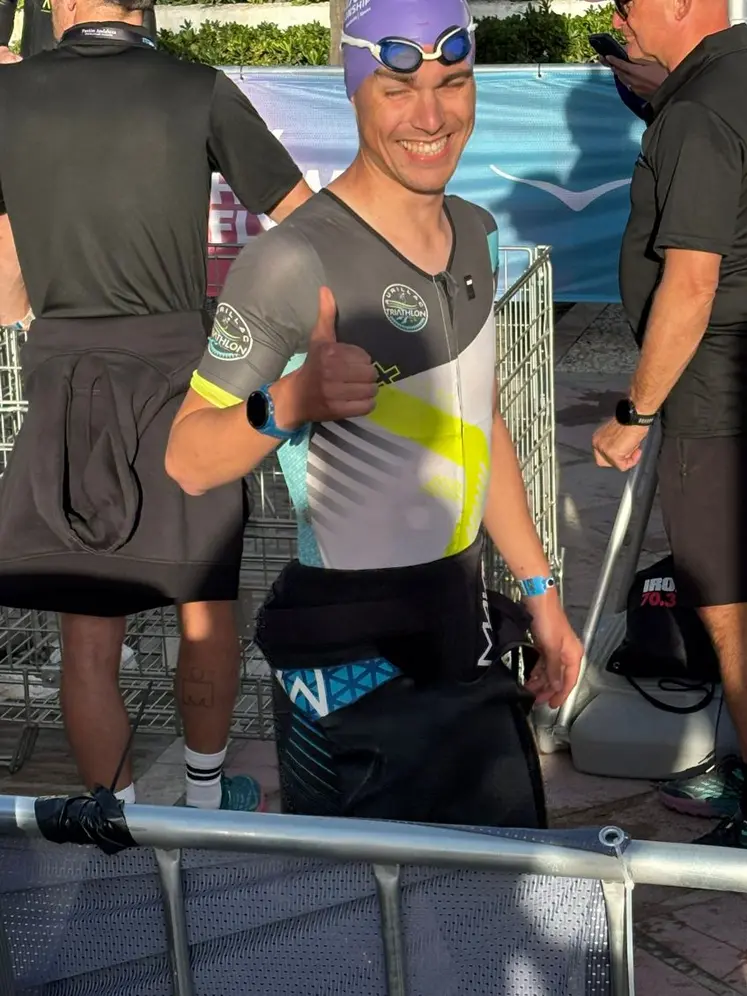 Yann Grangeon : « Merci ! Cela s'est très bien passé. J'ai fait une bonne natation car c'est la première fois que je nageais en mer. Mais au final je suis très agréablement surpris par mon temps (il sort 186e en 31'10'') parce que je suis plutôt mauvais nageur. Ensuite, c'est surtout en vélo où j'ai rattrapé beaucoup de monde. Le parcours était super sympa avec pas mal de dénivelé – ce qui m'arrangeait vu que dans le Cantal il y en a pas mal aussi -, ensuite, en course à pied, j'ai réussi à grappiller quelques places, même si ça commençait à être dur. Heureusement, j'avais pas mal de famille qui m'encourageait, donc ça m'a aidé. »