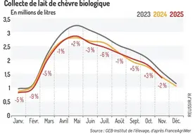 La collecte 2025 de lait de chèvre bio recule légèrement à 22,7 millions de litres tandis que les…