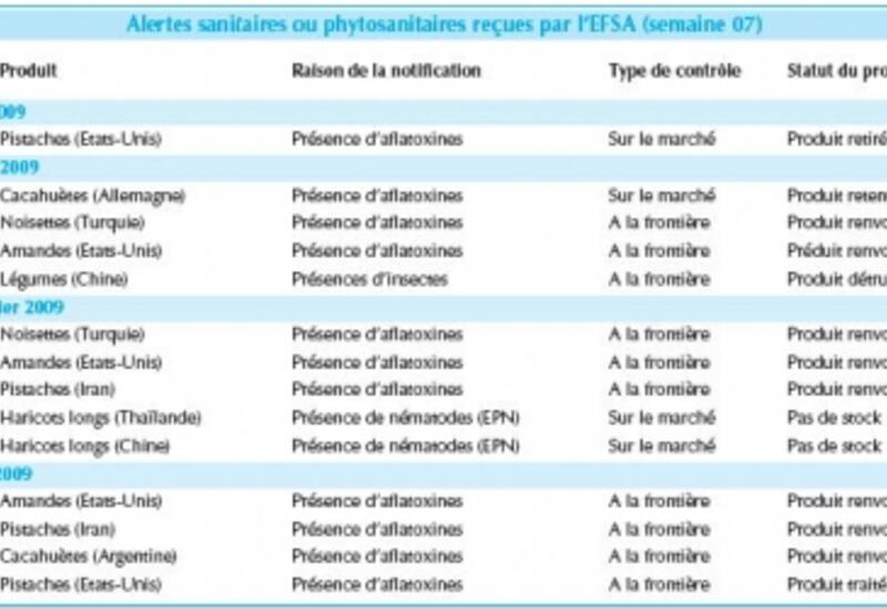 Alertes sanitaires ou phytosanitaires reçues par l’EFSA (semaine 07)