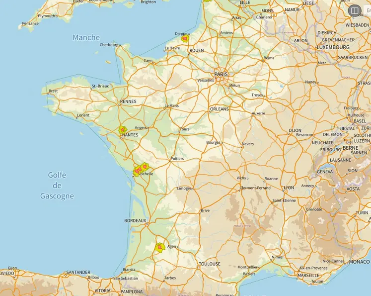 Depuis le 10 octobre 2025, trois foyers d’IAHP ont été confirmés dans des basse-cours (en Vendée, Seine Maritime et Charente-Maritime) et quatre foyers dans des élevages commerciaux :