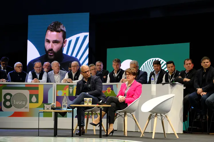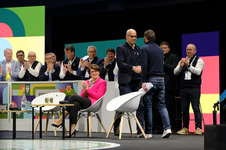 « L’avenir de la FNSEA passera par le renouvellement constant de ses représentants. Pas pour tourner la page. Mais pour écrire la suivante, ensemble. Les jeunes générations ne sont pas une menace. Elles sont une chance. Mais pour qu’elles s’engagent, nos structures doivent, elles aussi, évoluer et s’adapter », lance Pierrick Horel en tribune, sous le regard d’Arnaud Rousseau, président de la FNSEA.