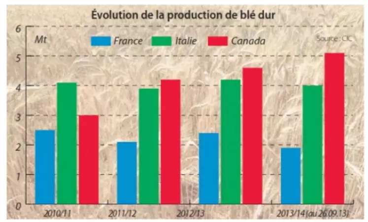 La production du Canada se révèle volumineuse et hétérogène en qualité. Résultat : le pays sera présent sur tous les compartiments du marché mondial, concurrençant un peu plus les blés durs français.