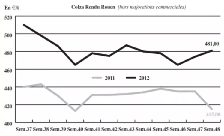 Les cours du colza se sont raffermis sous l’influence de la graine outre-Atlantique. Sur le marché physique français, les transactions sont concentrées sur le rapproché. Les triturateurs tirent profits des bonnes marges de trituration sur début 2013. Au niveau européen, les travaux de semis de colza sont terminés. Les prix du soja US sont soutenus par une forte demande mondiale, cette origine étant quasiment la seule disponible sur le marché actuellement. De plus, les opérateurs sont inquiets pour les semis sud-américains. Le centre du Brésil manque d’eau, tandis que les sols du nord de l’Argentine sont trop humides. Les semis de soja argentins seraient réalisés à 37 %, contre 46 % en 2011. Les cotations du tournesol ont également progressé. À noter que les taxes sur les importations indonésiennes d'huile de palme brut et raffinée resteront respectivement à 9 et 3 % sur décembre. Le marché de la graine de lin est toujours très tendu mais sans affaire car les acheteurs considèrent le prix de la graine trop élevé et les quantités disponibles à la vente sont quasi nulles compte-tenu de la faible production en 2012.