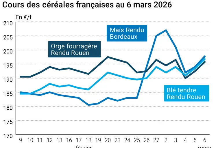 L’évolution des prix du blé, de l’orge et du maïs français entre le 5 et le 6 mars 2026, expliquée par La…