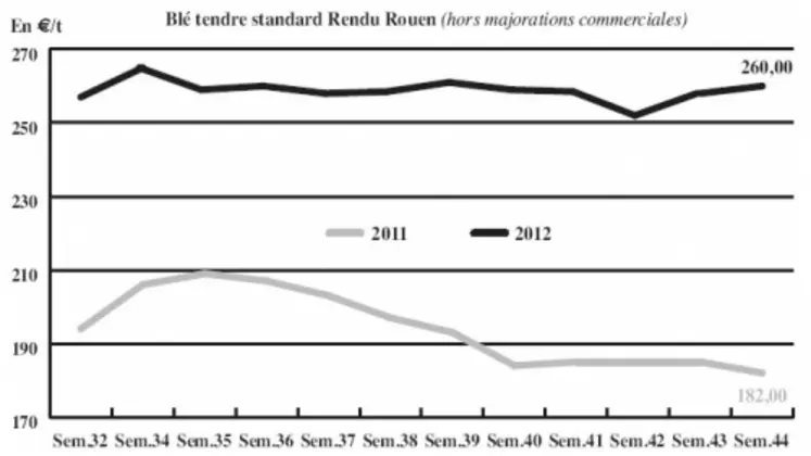 Les cours du blé tendre français s’établissent en légère hausse sur la semaine, favorisée par une parité euro/dollar propice aux exportations de productions françaises. Les inquiétudes concernant les récoltes à venir dans l’Hémisphère Sud ont également contribué au mouvement de fermeté. Les opérateurs restent en effet attentifs aux conditions climatiques, jusqu’ici défavorables aux cultures argentines et australiennes. Celles-ci devaient cependant s’améliorer.