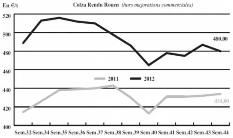 Les cours du colza ont reculé à l’image du pétrole et de la graine US, en l’absence de nouvel élément fondamental propre. L’activité limitée sur les huiles a également pesé sur les prix. Dans de nombreuses régions françaises, les colzas ne sont pas assez développés, ce qui fait craindre aux opérateurs des dégâts en cas de gel cet hiver. La tension sur ce marché est aussi liée à la baisse de production de canola au Canada. Les cotations du soja ont régressé dans un contexte de ventes US en dessous des attentes. Les opérateurs misent toujours sur une révision à la hausse de la production US 2012 par le département américain de l’Agriculture en novembre. Selon le CIC, la production mondiale de soja est attendue à 264 Mt, contre 256 Mt le mois dernier, et 238 Mt l’an dernier. La baisse des prix reste limitée par la reprise de la demande mondiale, et l’anticipation d’un manque de disponibilités sur la fin de l’année. Les cours du tournesol baissent à l’instar des autres oléagineux. L’Indonésie devrait réviser à la baisse ses taxes à l’exportation sur l’huile de palme en novembre à 9 % contre 13,5 % précédemment.