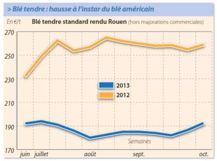 Les échanges s’avèrent très limités, que ce soit sur la récolte 2013 ou celle de 2014. La concurrence des autres producteurs européens pourrait expliquer cette tendance. Cette inertie peut aussi être liée aussi au fait que les opérateurs de l’amont sont accaparés par les récoltes de tournesol et de maïs. Les cours des orges de printemps 2013 évoluent donc peu. Ils se tassent sur 2014.