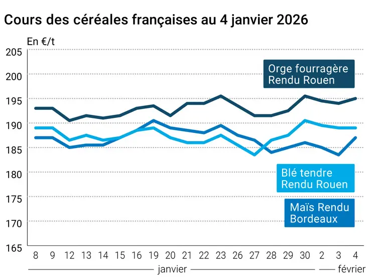 Marchés physiques français du 4 février 2026 (base juillet pour les céréales)