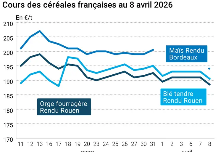 L’évolution des prix du blé, de l’orge et du maïs français entre le 7 et le 8 avril 2026, expliquée par La…