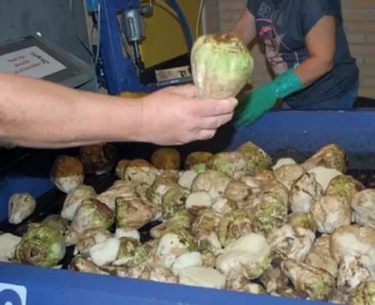 Cette année, un nouveau système de réception des betteraves est expérimenté sur le site de sillery. à l’arrivée, s’opère un échantillonnage aléatoire, sur environ un camion sur deux. Avant, cet échantillon subissait un décolletage manuel : on coupait le haut de la betterave – le collet – idéalement en-dessous des feuilles et avant le premier cercle saccharifère. Cela donnait un taux de collet, non rémunéré à l’agriculteur, car celui-ci collet est principalement constitué de non-sucres, tels que des produits minéraux, qui gênent l’extraction. « Cette opération était sujette à discussion, car d’une année sur l’autre, les betteraves n’ont pas la même forme. Les agriculteurs pouvaient avoir le sentiment de “se faire avoir”, et cela ne les encourageait pas à couper au mieux les betteraves au champ », explique William Huet, responsable du département Agronomie de Cristal Union. Le nouveau système est basé sur une analyse visuelle des échantillons. « On veut une betterave totalement effeuillée et légèrement scalpée. » Au delà de 18 betteraves « moches » sur un lot d’environ 75, Cela ne convient pas. « Mais on ne rejette pas de camions. En revanche, l’agriculteur aura une pénalité financière. C’est le travail au champ qui est vraiment qualifié. C’est une façon plus positive de gérer les choses ». Depuis cinq ans, le taux de collet était de 8,89 %. Là, il passerait à 7,1 %, donc tout le monde devrait être gagnant.
