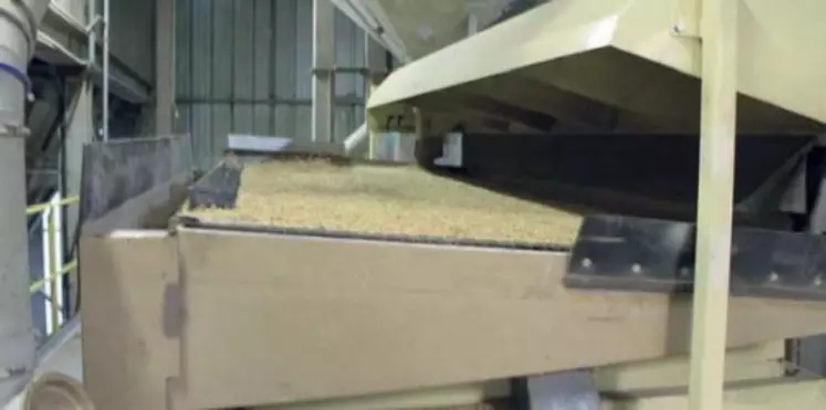 Les “ bonnes ” graines poursuivent sur le triage. Il existe deux lignes de triage. Une ancienne, avec table densimétrique et un débit de 8 t/h. Une nouvelle, avec des trieurs optiques, qui permettent une vitesse de tri de 15 t/h. « Une technologie qui n’existe que depuis deux ans sur les céréales à paille », indique emmanuel Deloge. De plus, avec l’utilisation décroissante de produits phytosanitaires, les parcelles sont plus sales, ce qui peut poser un problème de débit avec les trieurs conventionnels. Ce nouveau matériel est monté dans un local indépendant du reste de la structure, pour éviter que les vibrations ne se répercutent. À noter que les deux lignes sont automatisées et gérées par une seule personne. En fin de ligne, il y a un préleveur automatique qui effectue des échantillonnages toutes les 120 secondes. Ces échantillons sont conservés pendant un an.