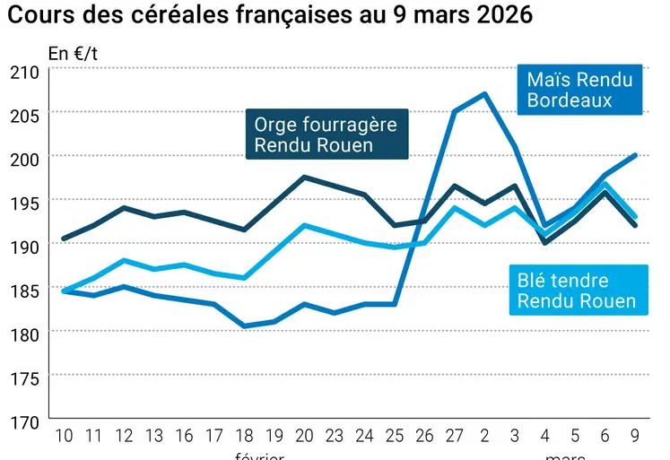 L’évolution des prix du blé, de l’orge et du maïs français entre le 6 et le 9 mars 2026, expliquée par La…