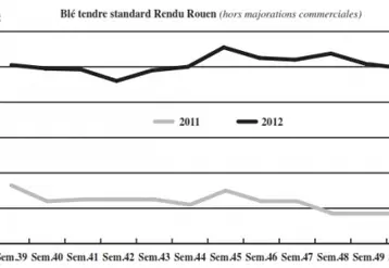 Indice des prix des matières premières en disponible, entrant dans l’alimentation animale (entre parenthèses indice de la semaine…