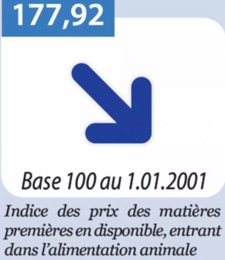 L'Indice des prix des matières premières entrant dans l'alimentation animale (IPAA) régresse, perdant un peu plus de 2 points sur la semaine. La baisse de l'ensemble des céréales (blé et orge essentiellement), des tourteaux de soja, de colza et de la graine oléagineuse, ont tiré l'indice vers le bas.