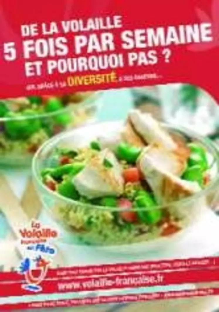 L’association de promotion de la volaille française (APVF) et Jean-Pierre Coffe s’activent pour la préparation de la 1 ère édition du mois de la volaille, en mars prochain, sur la thématique « de la volaille 5 fois par semaine et pourquoi pas ? ». Cette action sera mise an avant par une grande campagne radio sur RTL, France info et France Bleu. Des millions de stickers, relayant un jeu concours organisé sur le site www.volaille-francaise.fr, seront apposés sur les produits dans les linéaires. Affiches et sets de table seront envoyés aux grandes chaînes de restauration collective.