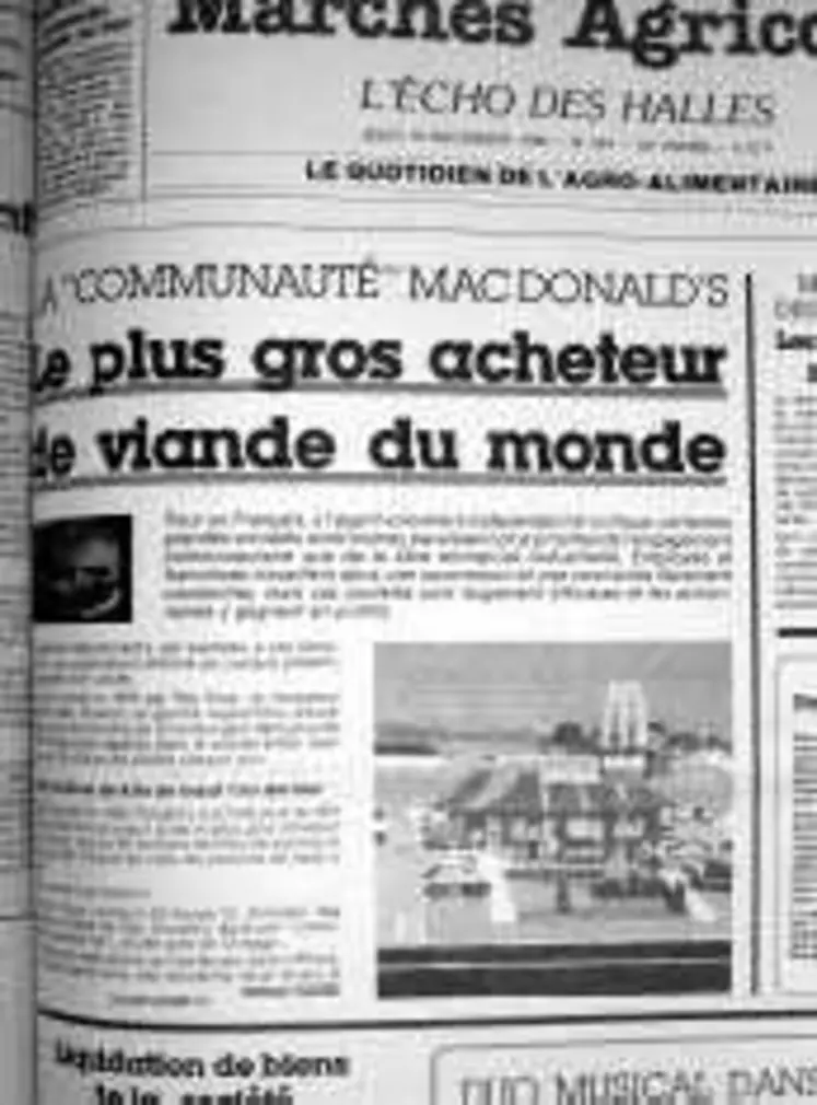En France, Mac Donald’s compte 25 restaurants dont 8 à Paris, 12 sont en franchise. Les principaux fournisseurs de Mac Donald’s France sont : pour la viande, la société Sogéviande (8 600 tonnes de steak haché) ; pour les pommes de terre, la société Mc Cain ; pour le pain, la société Jacquet ; pour les produits laitiers, l’Union laitière normande ; pour les poulets, Gallina ; pour les laitues iceberg, un producteur de Perpignan, Bernard Langlet. Mac Donald’s veut se développer rapidement en France (…). Le fast-food correspondrait à un phénomène socio-culturel durable dans tous les pays où (…) le goût d’une restauration équilibrée, d’un service rapide de qualité, au meilleur prix, dans un environnement agréable… Du moins Mac Donald’s en est-il persuadé.