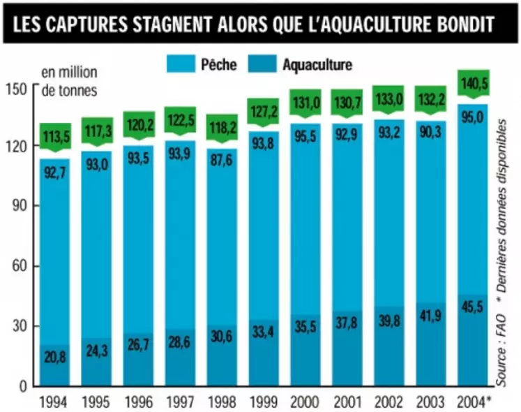 L’avenir des quotas de pêche pour 2007 a été réglé hier par les ministres de l’Europe des 25, qui doivent faire face à un appauvrissement des océans. Selon la FAO, 52% des ressources sont pleinement exploitées, tandis que 25% sont soit surexploitées (17%), soit épuisées (7%) soit en voie de reconstitution (1%). 20% des ressources sont modérément exploitées et seulement 3% sont classées dans la catégorie sous-exploitée. «Les prises à l’état sauvage sont encore élevées, mais elles se sont stabilisées, probablement pour toujours» indique la FAO. Raison de plus pour les distributeurs d’introduire de nouveaux poissons d’élevage et de promouvoir une pêche responsable.