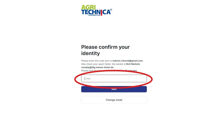 Recopiez le code à six chiffres que vous avez reçu par mail et cliquez sur Next.