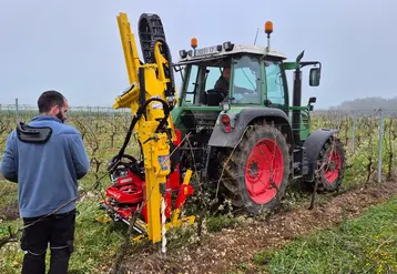Alexandre Molin, vigneron à Fixin, en Côte-d’Or, a réalisé un système pour enrouler les fils avant arrachage…