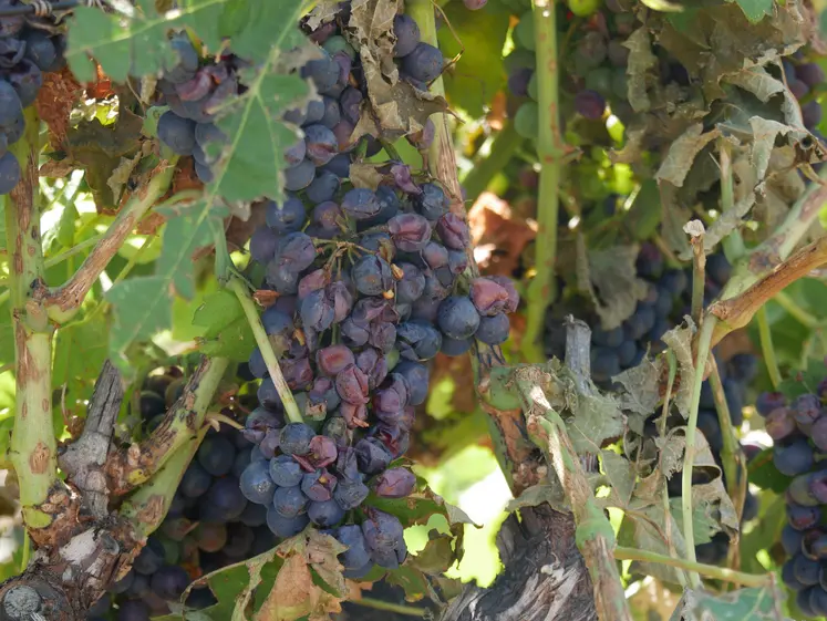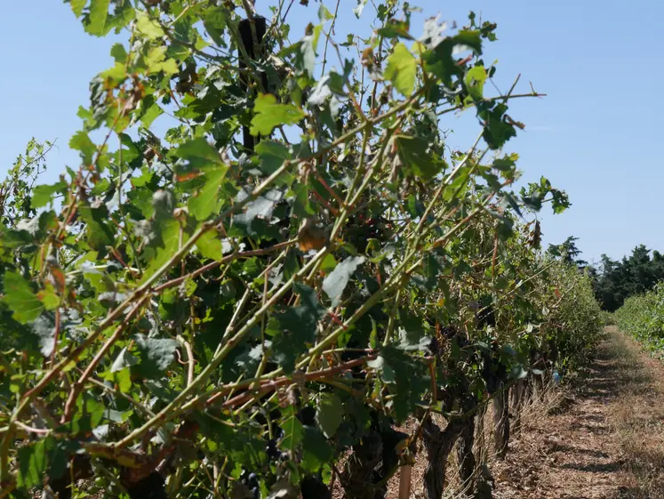 En dehors de ce cas de configuration, le mieux est de laisser la vigne en état. Le développement des entre-cœurs permettra de reconstituer une nouvelle végétation. Sur des vignes jeunes ou faibles, tomber les grappes permet de soulager les souches et éviter un épuisement des réserves.